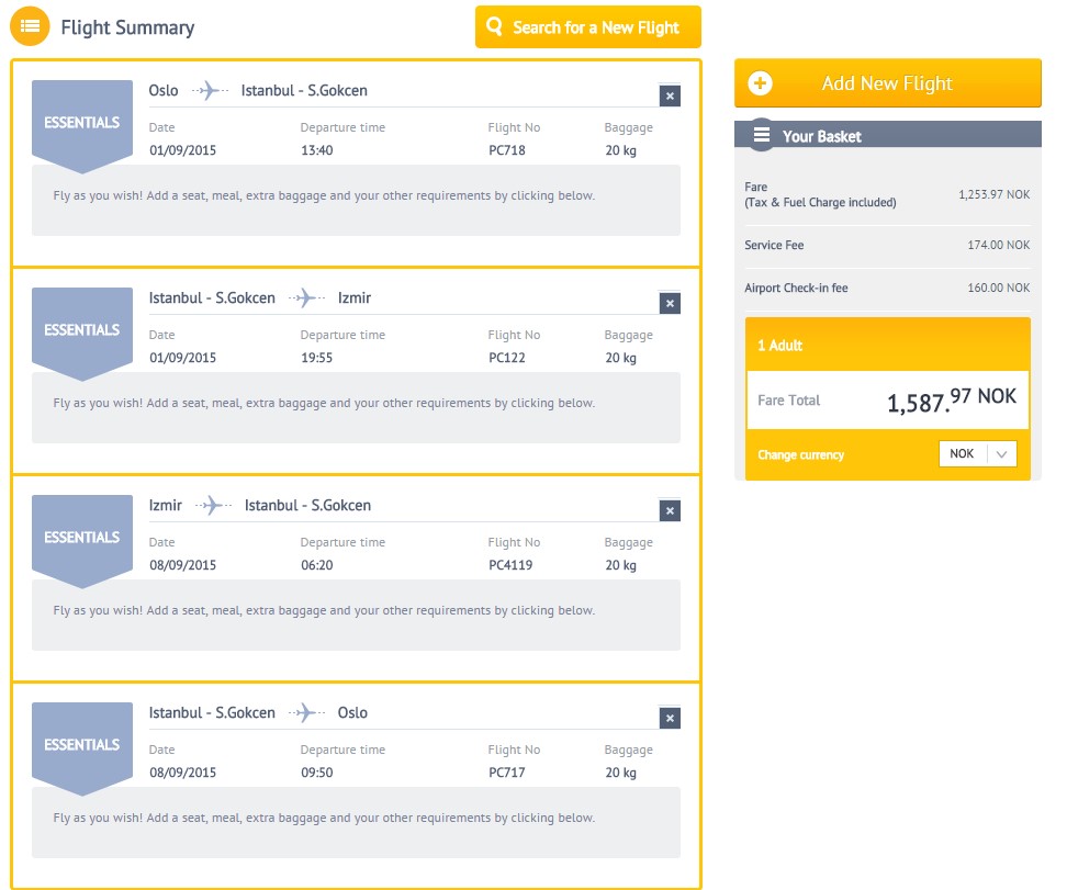 2. Fly til izmir fra Oslo via istanbul Et tyrkisk flyselskap som heter Pegasus (www.flypgs.com) flyr fra Oslo til Izmir for veldig billig priser. T/r for en ukes opphold koster ca 1600 kr per d.d.