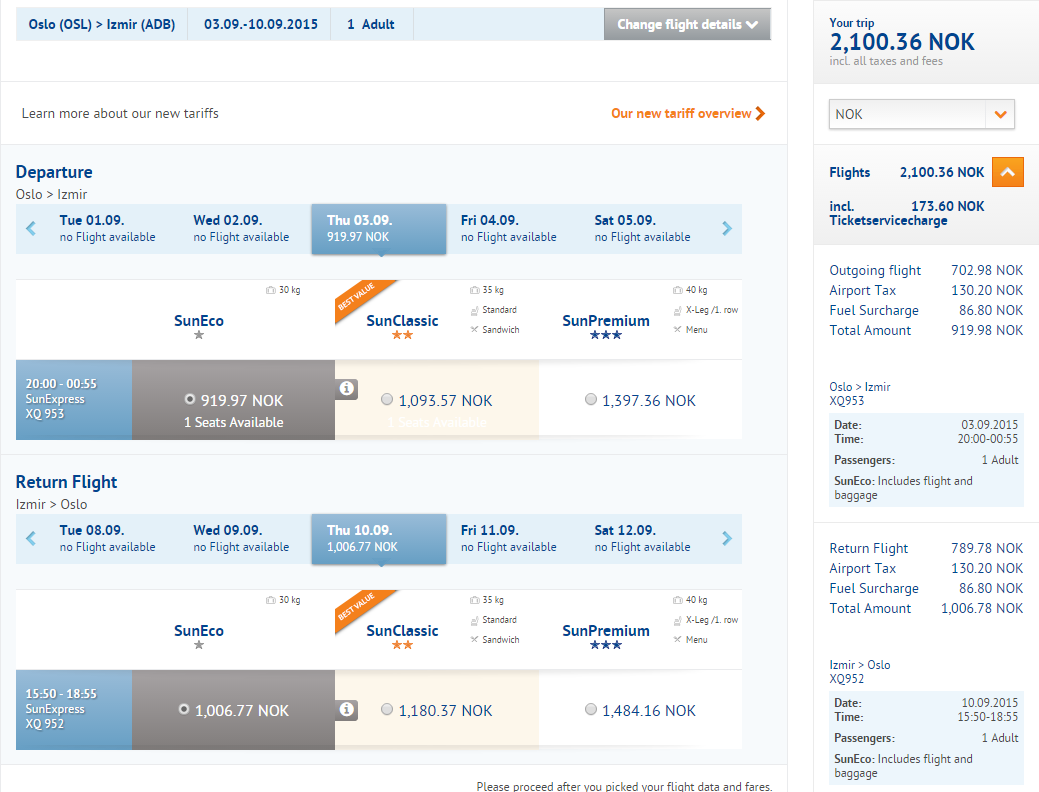 Det er et flyselskap som heter Sun Express som har direkte fly til izmir fra København og Oslo. Fra Køben er det fly på tirsdager torsdager og lørdager. Fra Oslo er det fly på kun torsdag. Akkurat nå går flybilett t/r for ca 1700 kr fra Køben per person, og 2000 kr fra Oslo. Nedenfor er det vist en mulig avreise fra Oslo med dette flyselskapet som koster t/r 2100 nå. Se www.sunexpress.com/ for mer informasjon